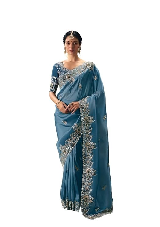 - LUXURIOUS FABRIC: Crafted from premium silk blend material in an elegant blue shade, this saree drapes beautifully and offers a sophisticated sheen perfect for special occasions