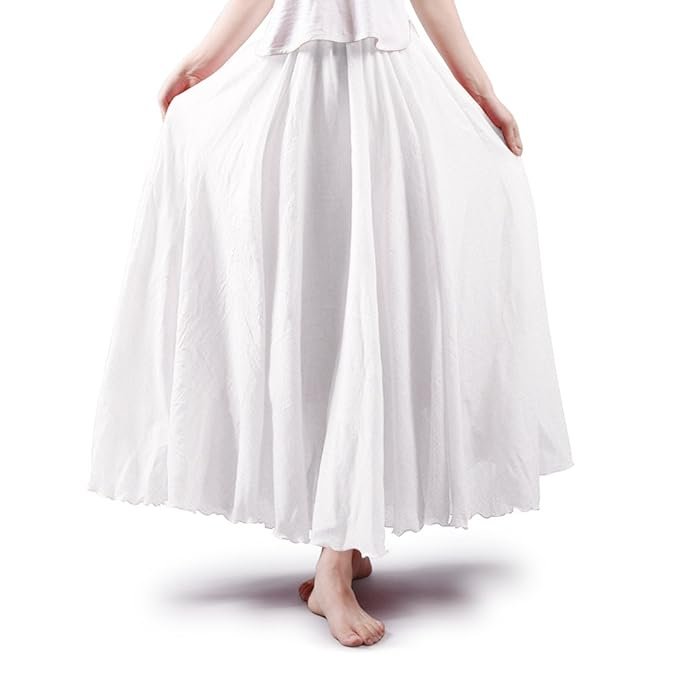 Women’s Bohemian Gypsy Elastic Waist A Line Cotton Linen Long Maxi Skirt