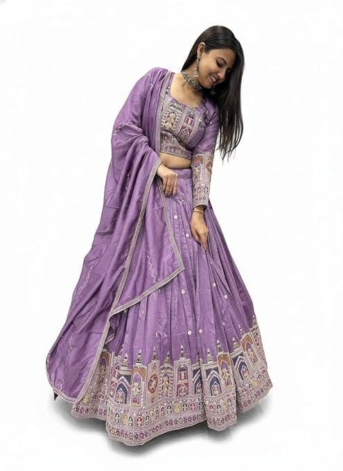 Women’s Festival Special Vichitra Silk Embroidery Sequence & Thread Work Lehenga Choli