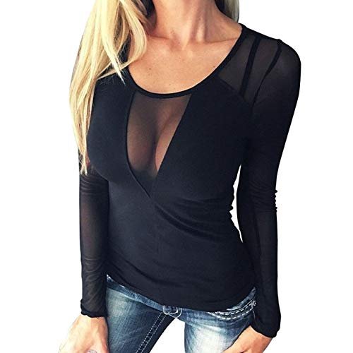 Women’s ly Long Sleeve T-Shirt Transparent Mesh Bodycon Tops Size: XXL; Material: Polyester Black