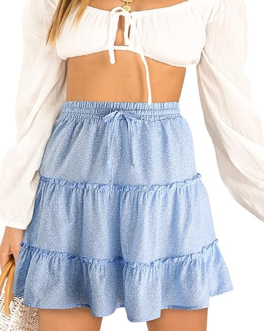 Women’s Summer Cute High Waist Ruffle Skirt Floral Print Swing Beach Mini Skirt
